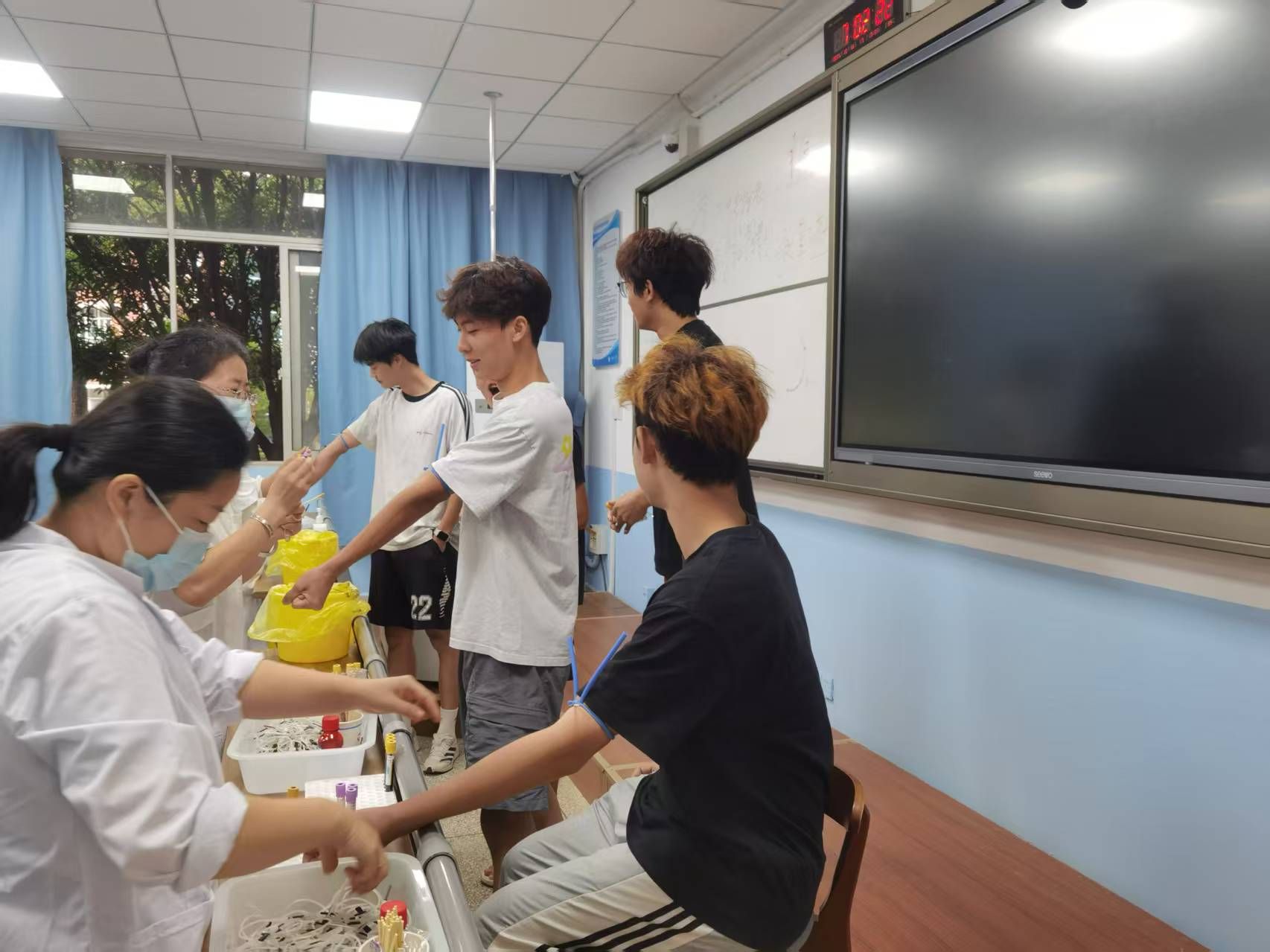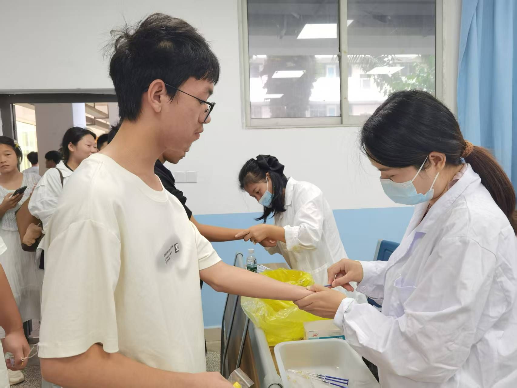 体检现场所有新生在各二级学院辅导员老师的安排下,按时分区排队,井然有序。体检内容主要包括血常规、结核菌素、视力及内科等项目。通过入学体检,学校能够全面、系统地掌握学生们的健康状况,从而采取必要的安全防护措施,有效遏制校园内传染病的传播,同时也帮助新同学尽快掌握传染病、多发病等预防知识,增强自我防范意识。