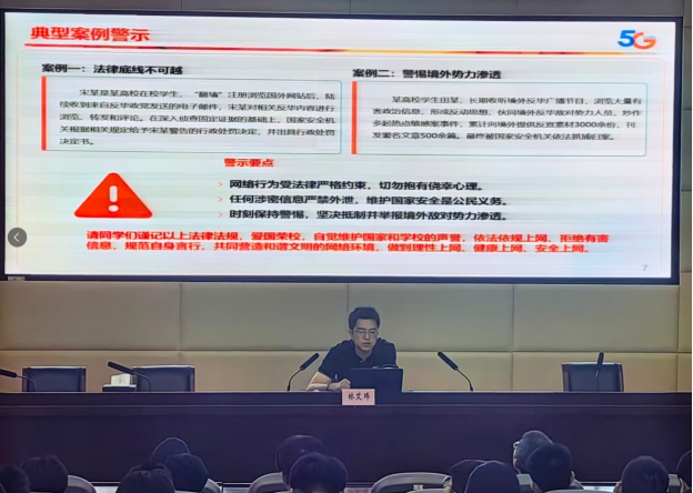 9月17日下午,校网信办邀请南昌电信网络安全专家以“强化安全意识,共筑网络安全”为主题举办讲座,正式启动了2025年学校“国家网络安全宣传周”活动。本次讲座旨在全面提升广大师生的网络安全意识和防护技能,营造安全、健康、文明的校园网络环境。讲座围绕网络安全基础、校园网络诈骗、法律法规规范、AI应用风险、典型案例警示、安全意识培养六个方面,系统介绍了网络安全的基本概念、法律法规以及常见风险,并通过案例剖析、互动体验、线上知识竞赛等多种形式,引导师生树立正确的网络安全观。